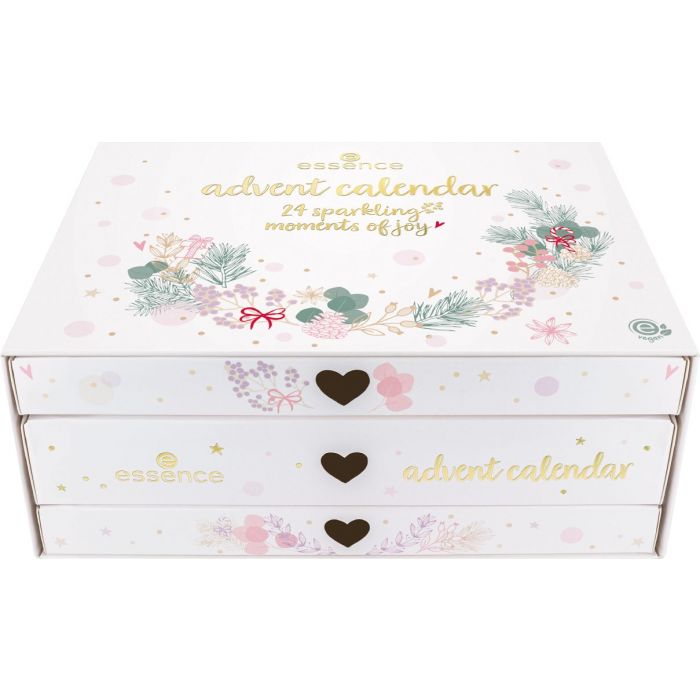 Edullisempaa kosmetiikkaa edustava Essence on tuonut markkinoille tänä vuonna kaksi joulukalenteria. 24 Sparkling Moments of Joy on kauniistu kuvioitu laatikosto, jossa on kolme vetolaatikkoa. Laatikot kätkevät sisäänsä 24 Essencen omaa tuotetta. Toinen joulukalenteri jättää tilaa luovuudelle: Made with Love DIY sisältää 24 Essencen tuotetta sekä paperipussit ja jouluiset numerotarrat, jolloin jokainen voi rakentaa itselleen tai lahjaksi oman joulukalenterinsa.