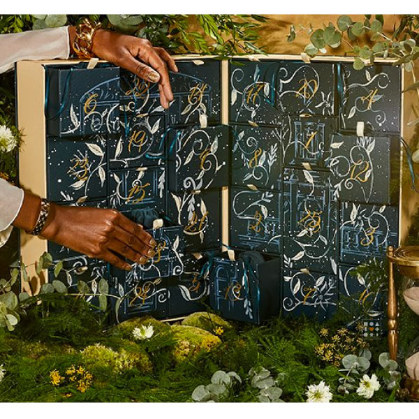 En pääse yli siitä, kuinka kaunis joulukalenterin ulkonäkö tänä vuonna on – Harrodsin kalenterin ulkoasu on ainakin oma suosikkini. Upean satumaisesti kuvioitu joulukalenteri hehkuu tummansinisen ja kullan sävyjä. Kalenteri sisältää 25 tuotetta erilaisilta selektiivisen kosmetiikan merkeiltä.
