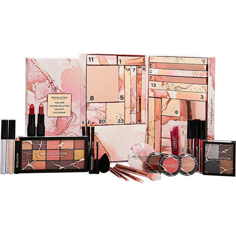 You Are The Revolution -joulukalenteri noudattelee samaa kullan ja vaaleanpunaisen värimaailmaa, mutta luukkuja tässä kalenterissa on 24 kappaletta. Myös tämän joulukalenterin sisältö on meikkipainotteinen, mutta sisällössä on hieman enemmän vaihtelua.