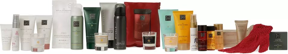 Joulukalenteri sisältää ihonhoitotuotteita useammasta Ritualsin tuotelinjasta. Tämä on positiivista ostajan kannalta, sillä kalenteri antaa mahdollisuuden tutustua useampiin eri Ritualsin tuotteisiin. Tässä edullisimmassa joulukalenterissa kaikki tuotteet näyttävät olevan mini- tai deluxekokoisia, mutta toki joulukalenteri onkin hinnaltaan melko edullinen.