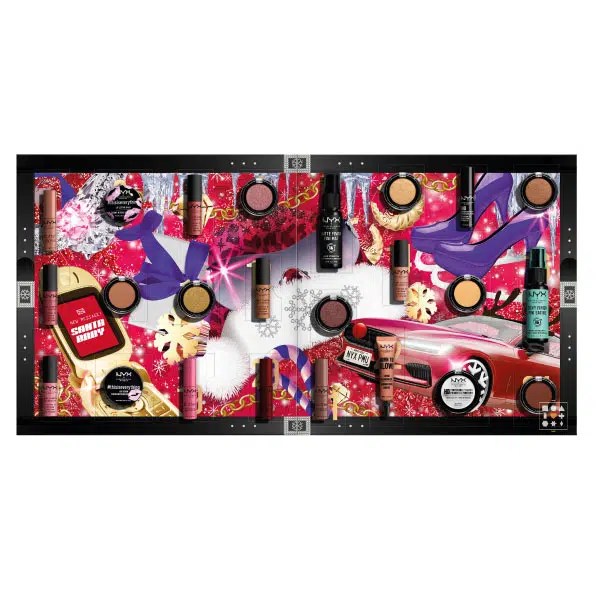 Kirjoitin jo aiemmin NYX:in 12 luukkua sisältävästä joulukalenterista (täällä). Silloin mainitsin, että tämä isompi joulukalenteri ei juurikaan innostanut minua tänä vuonna. Joulukalenteri tuntuu ensinnäkin toistavan edellisvuoden kalenterin sisältöä aika paljon. Toiseksi ihmettelen sitä, miksi NYX ei laita laajempaa valikoimaa tuotteistaan joulukalenteriinsa, sillä heillä on myynnissä paljon mielenkiintoisia tuotteita – nyt joulukalenterissa on kahdeksan luomivärinappia ja yhdeksän huulituotetta, joten päällekkäisyyttä on todella paljon. Luomivärinappien ja huulituotteiden sävyt myös tuntuvat olevan tänä vuonna lähellä toisiaan.